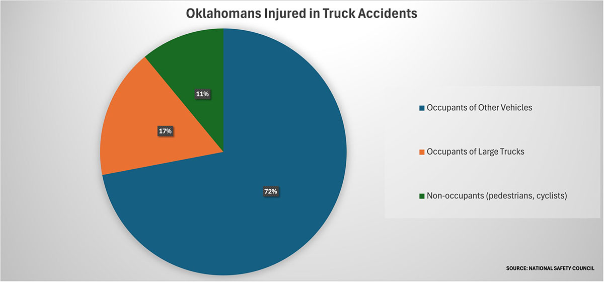 Large truck accidents are devastating. They can injure road users, damage property, and contaminate the environment. Several factors can cause truck accidents, such as the driver’s mental health, the weather conditions, or traffic density. While truck accidents are not as frequent as car accidents, they do result in serious and sometimes fatal injuries far more often than victims of a car crash. Below is a graph showing the number of trucking accidents that occurred in Oklahoma City and the outcome for the victims.